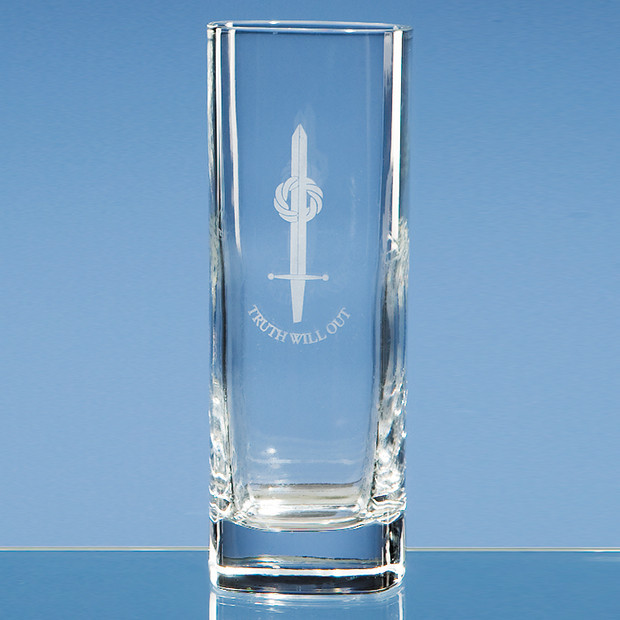 The Strauss high ball glass's modern style and large engraving area makes it a perfect gift to personalise and give away individually or in pairs. It can be personalised with any crest, logo or wording to create a gift that is sure to take pride of place when put on display at home or at work. Options available include single or double satin lined presentation boxes.